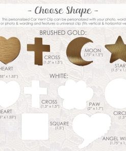 Add a special touch to your car with the Personalized Car Photo Vent Clip! This unique accessory lets you display your favorite photo or meaningful words on a heart-shaped, paw, circle, square, cross, star or moon metal charm, turning every drive into a heartfelt experience.