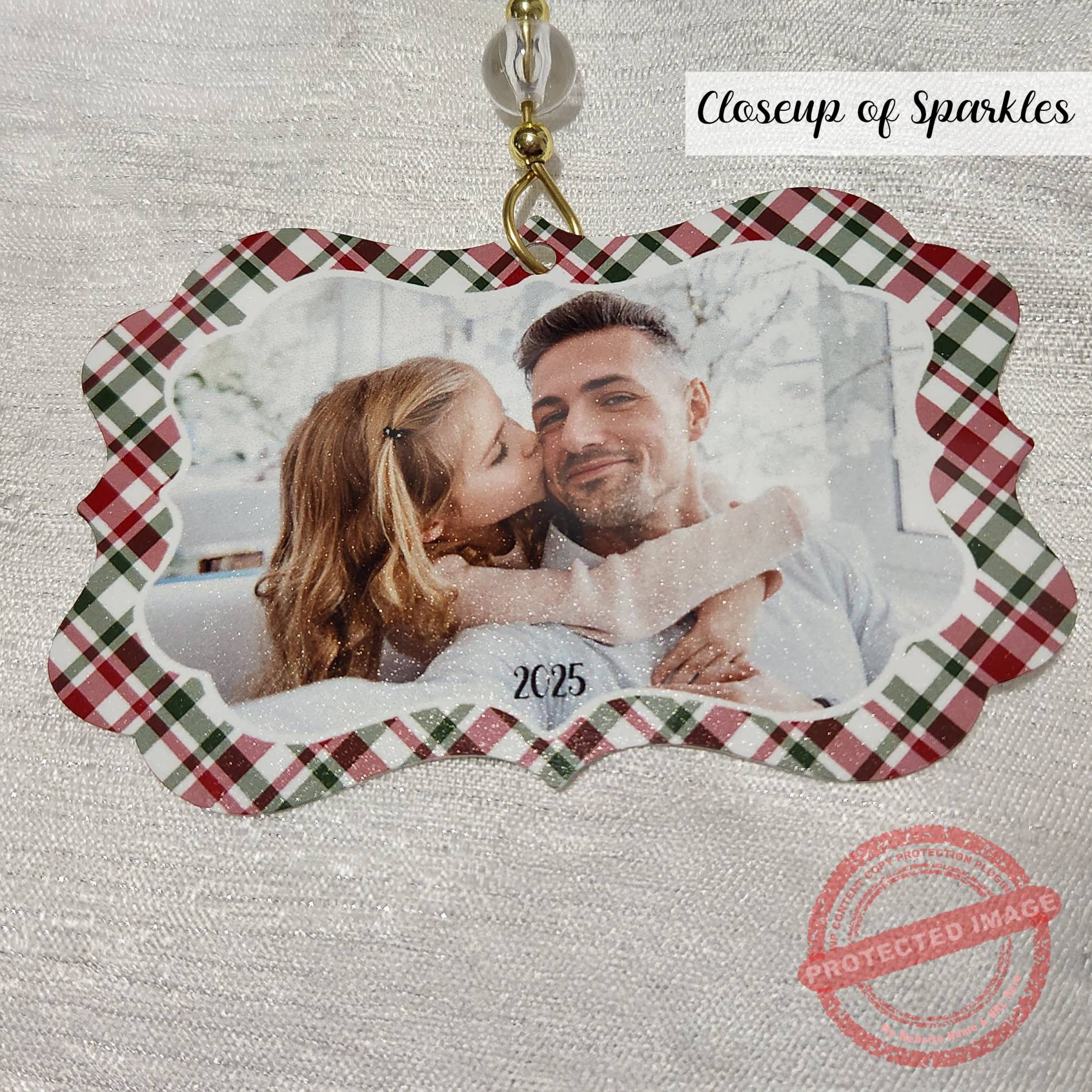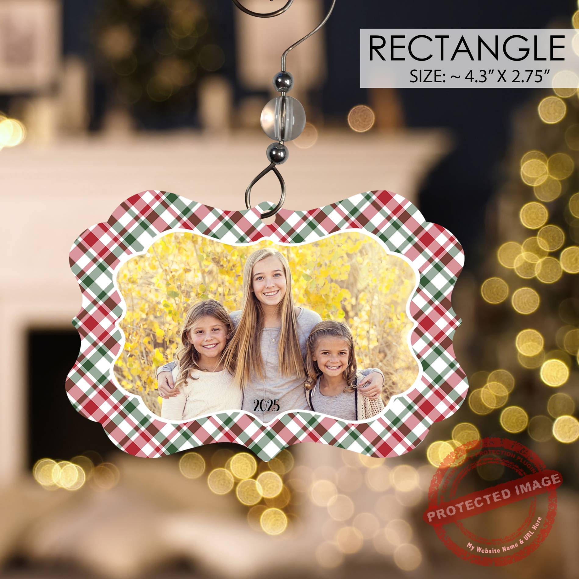 The 2025 photo ornament is single-sided with a sleek white surface on both sides, featuring a soft sparkle shimmer when the light hits it just right. This rectangle photo christmas ornament measures approximately 4.3″ wide x 2.75″ tall—perfectly sized to show off your favorite snapshot, whether it’s a family moment, a special celebration, or a memory you want to keep close every year.
