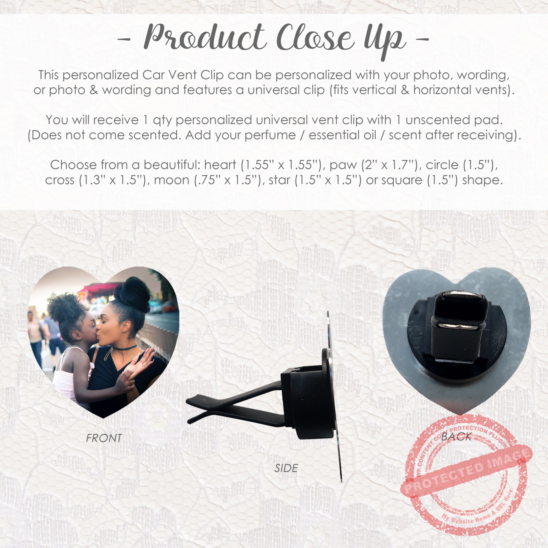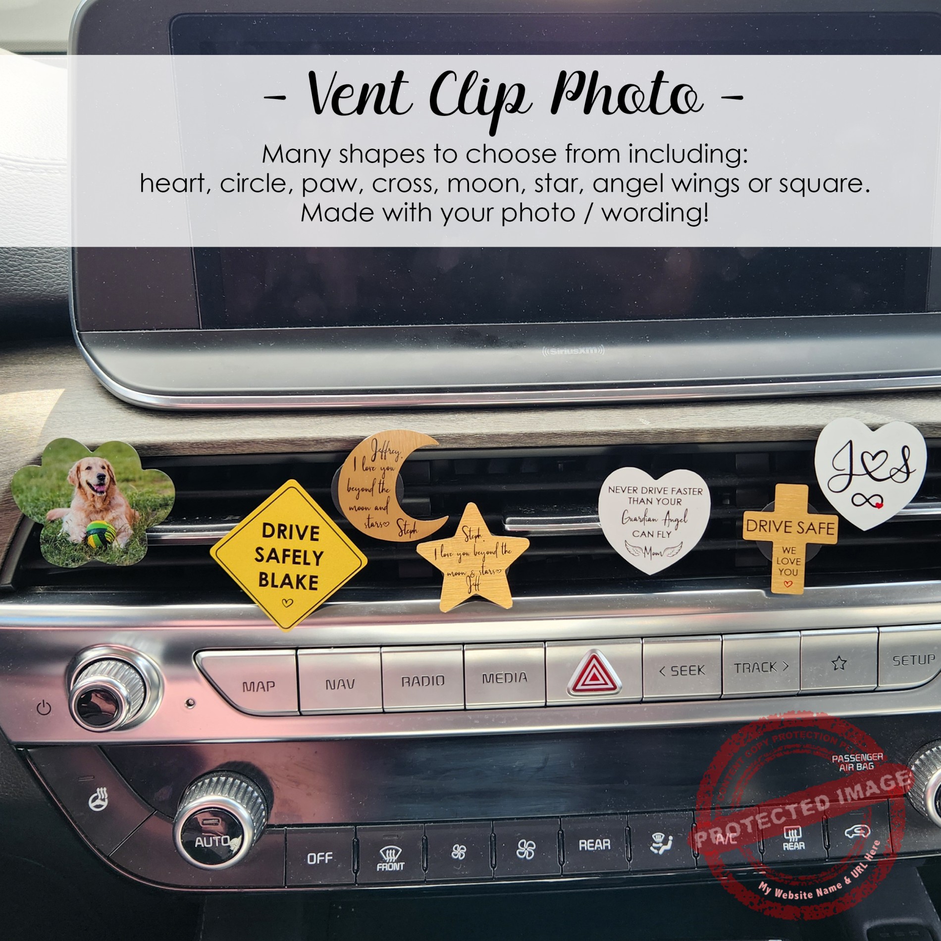 Upgrade your car with the Personalized Photo Vent Clip and take your special memories with you wherever you go!