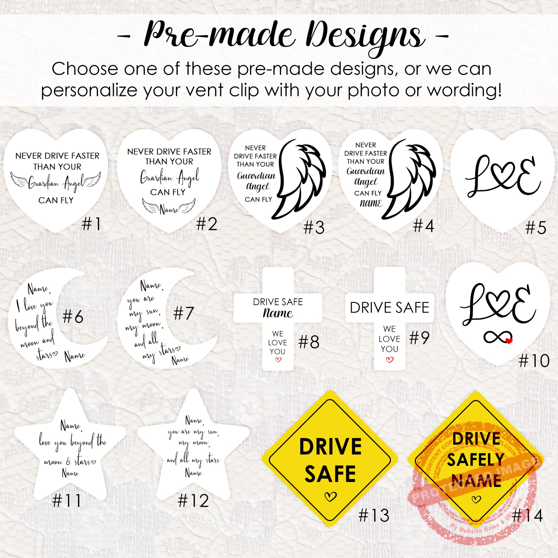 Choose one of our pre-made designs for your Personalized Car Vent Clip or we can make it with your photo and or wording!