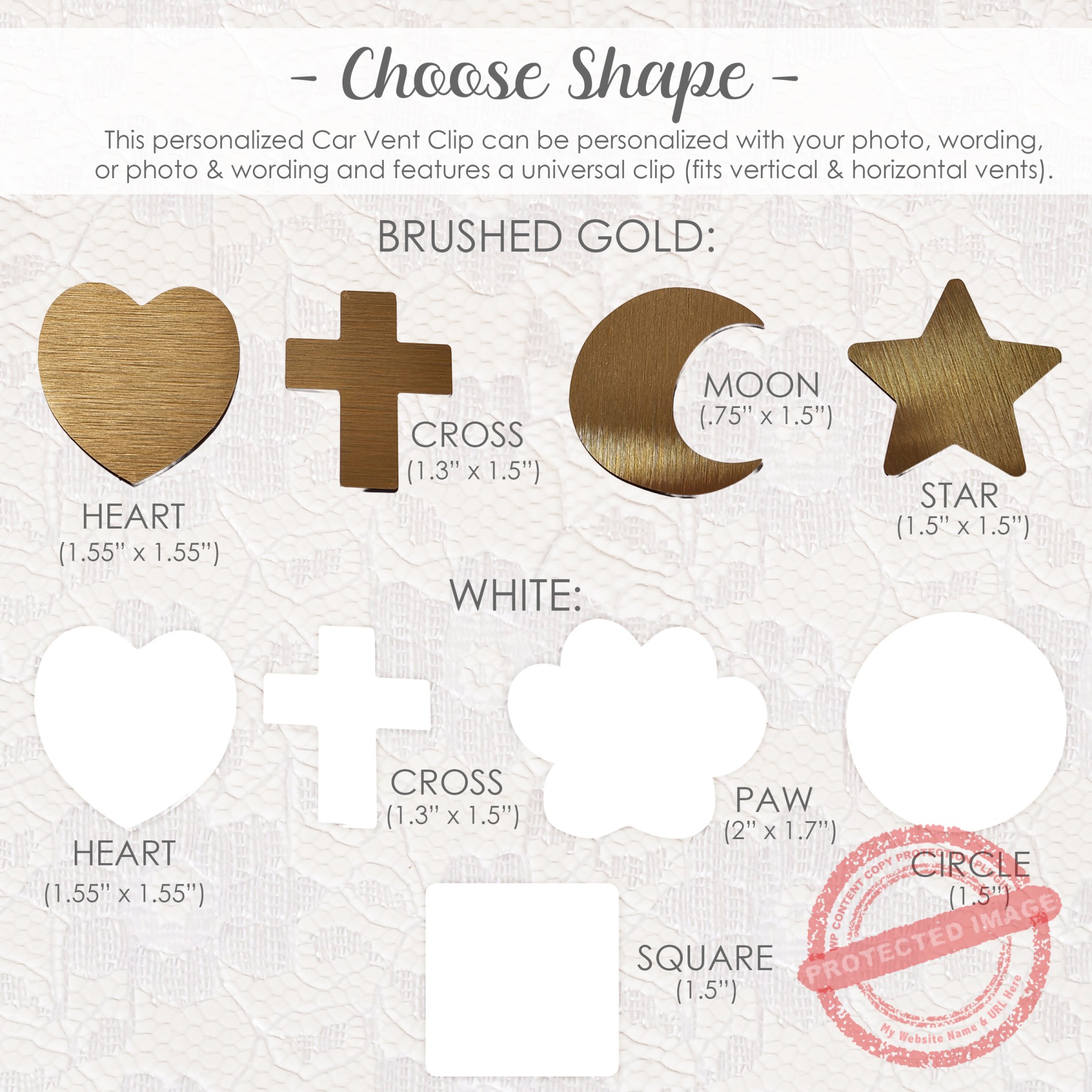 Add a special touch to your car with the Personalized Car Photo Vent Clip! This unique accessory lets you display your favorite photo or meaningful words on a heart-shaped, paw, circle, square, cross, star or moon metal charm, turning every drive into a heartfelt experience.